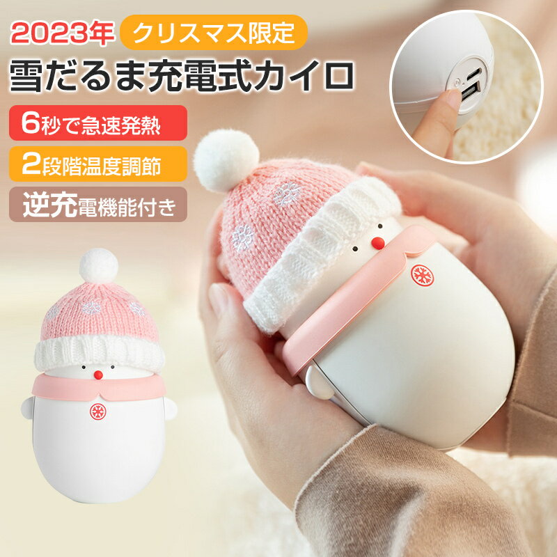【2023年初登場・暖かい贈り物】雪だるま 充電式カイロ 6000mAh モバイルバッテリー機能付き 両面急速発熱 2段階温度調節 小型 ギフト 電気カイロ 旅行/出張/アウトドア/防寒グッズ/通勤通学/クリスマスプレゼントで、